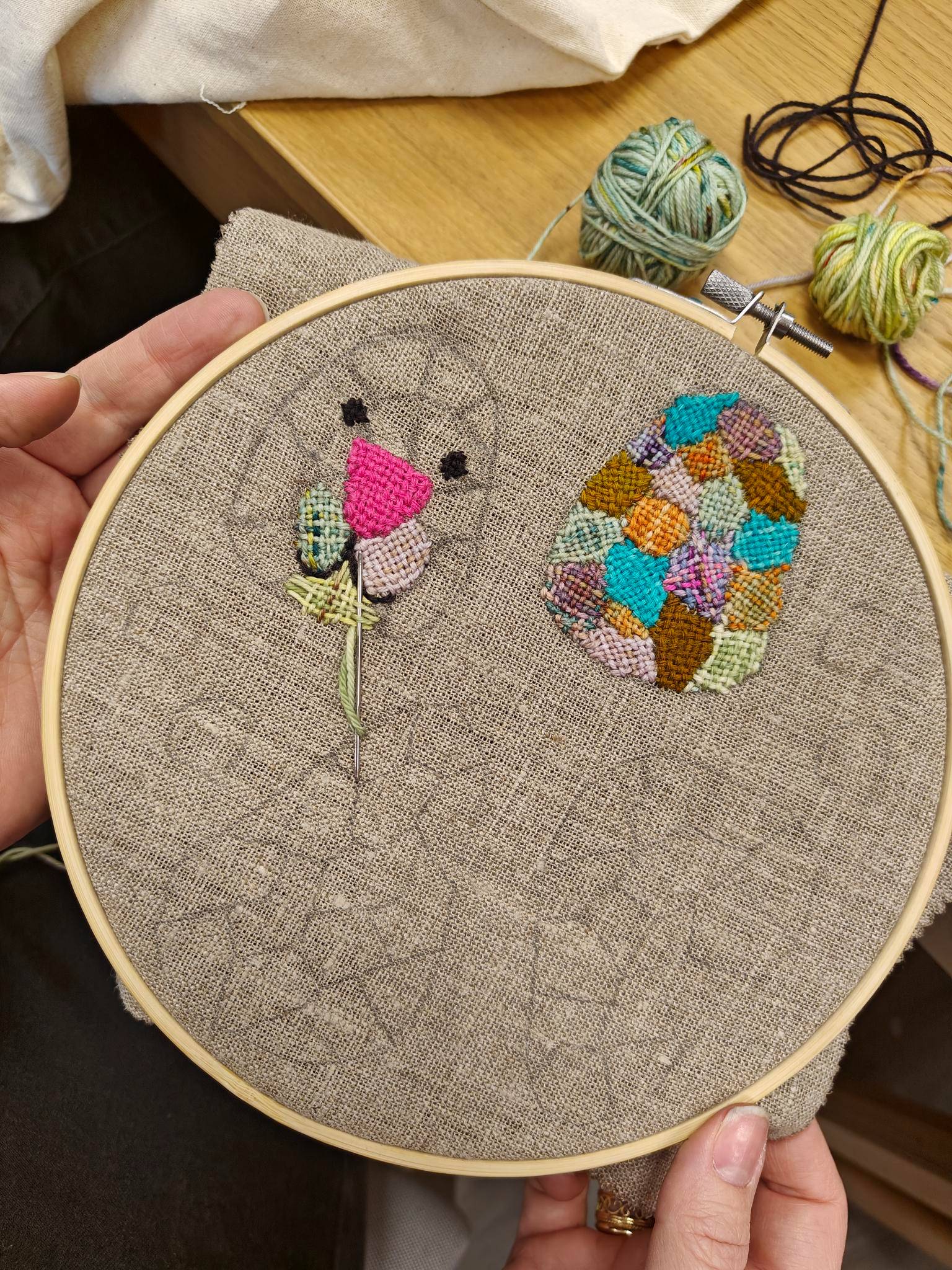 Ti 19.5. klo 17–21. Kurssimaksu 45 €. Kurssimaksu sisältää opetuksen, materiaalit ja kahvitarjoilun. Mosaiikkikirjonta (mosaic embrodery) on maailmalla trendaava ja innostava kirjontatekniikka. Mosaiikkikirjonta perustuu perinteisiin parsintapistoihin ja tekniikkaan voi yhdistää myös muita kirjontapistoja. Iloiset ja värikkäät mosaiikkikirjonnat ovat upeita ja uniikkeja käsityötuotteita! Kurssilla opetellaan mosaiikkikirjonnan tekniikkaa ja aloitetaan suloisen pehmolelun kirjonta. Voit suunnitella kaavan yksinkertaiseen pehmoleluun itse tai käyttää valmista nallen kaavaa. Kurssilla käytettävän kirjontakehyksen voi lunastaa itselleen erilliseen hintaan. Kurssityö viimeistellään kotona loppuun.